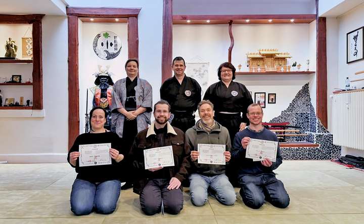 Am Ende fanden dann noch Prüfungen statt. Wir gratulieren Mone zum 6. Kyū sowie Alex, Daniel und Steffen zum 5. Kyū. Herzlichen Glückwunsch!
